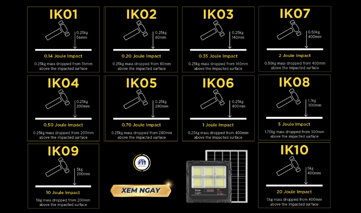 - Câu trả lời 7: Nhiều nhà cung cấp đèn LED trên thị trường đều có sản phẩm với nhiều chỉ số IK khác nhau. Bạn nên tìm hiểu kỹ thông tin trước khi mua.